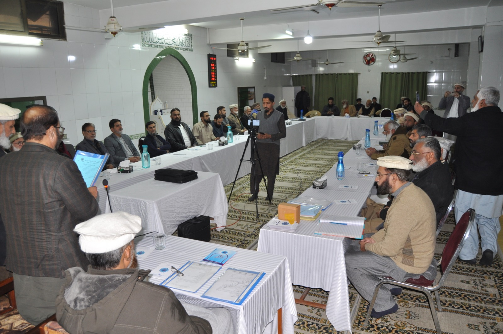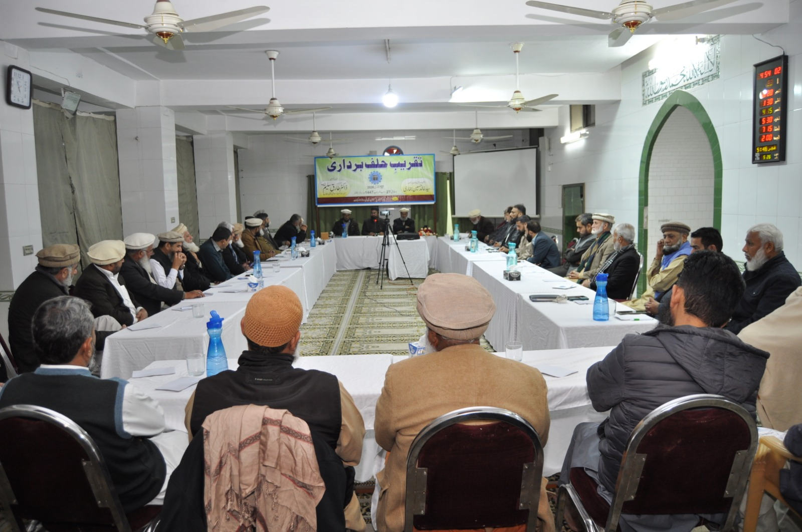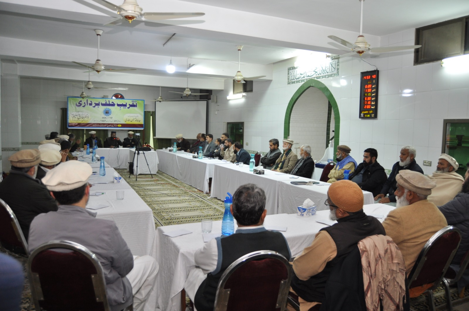 ڈاکٹر طارق سلیم امیر جماعت اسلامی پنجاب شمالی نومنتخب صدر تحریک محنت پاکستان خالد حسین بخاری سے مرکزی مجلس شوریٰ کے اجلاس میں حلف لے رہے ہیں