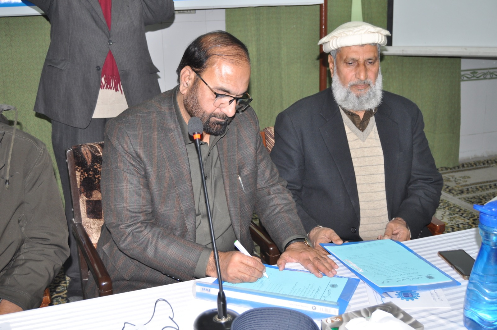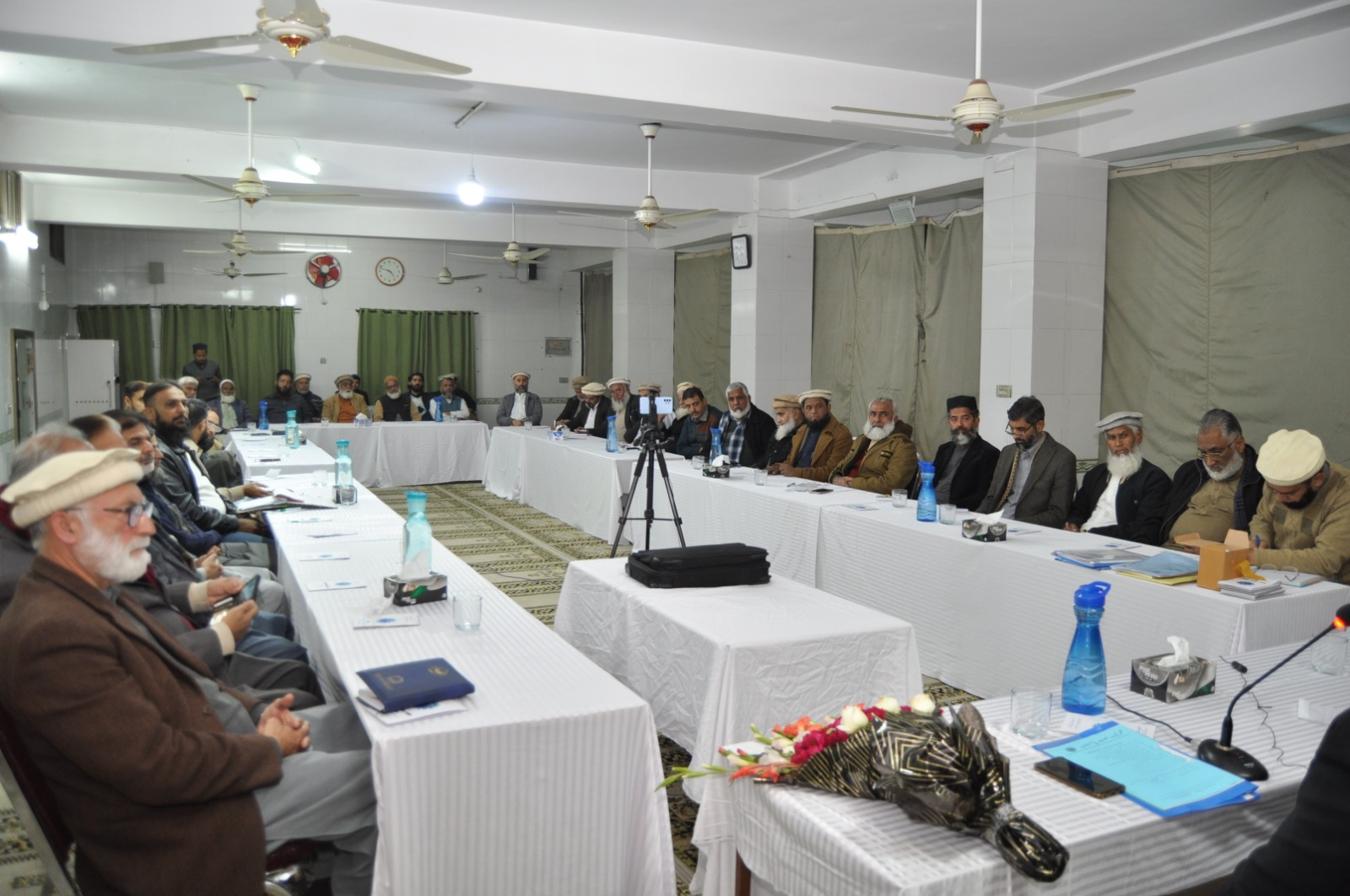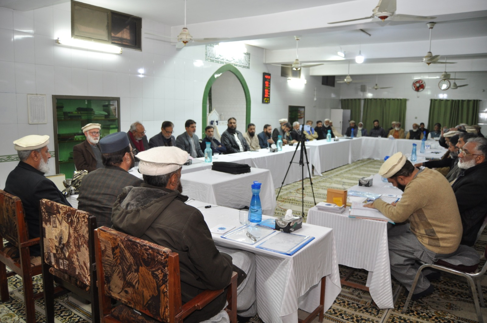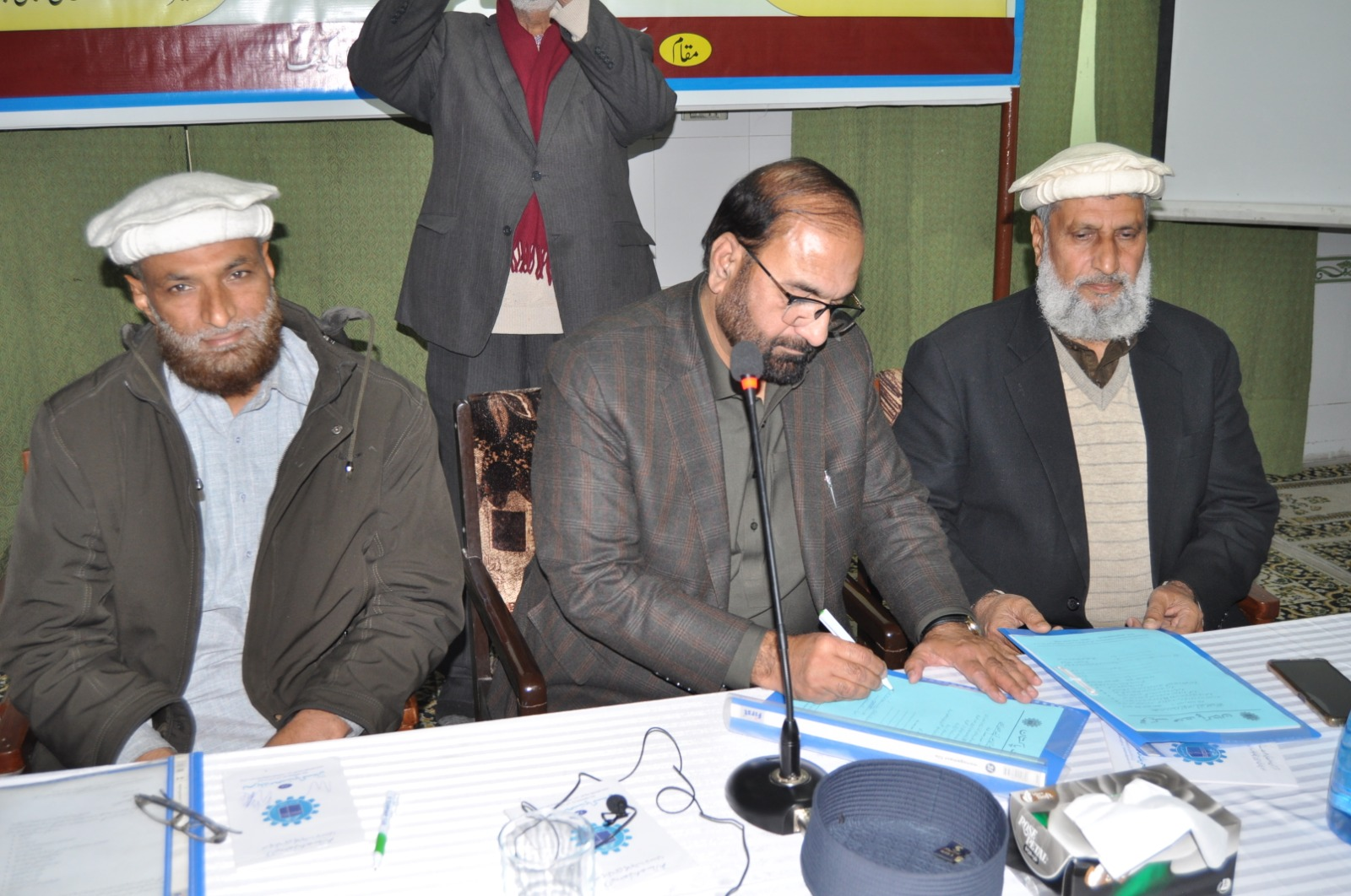 ڈاکٹر طارق سلیم امیر جماعت اسلامی پنجاب شمالی نومنتخب صدر تحریک محنت پاکستان خالد حسین بخاری سے مرکزی مجلس شوریٰ کے اجلاس میں حلف لے رہے ہیں